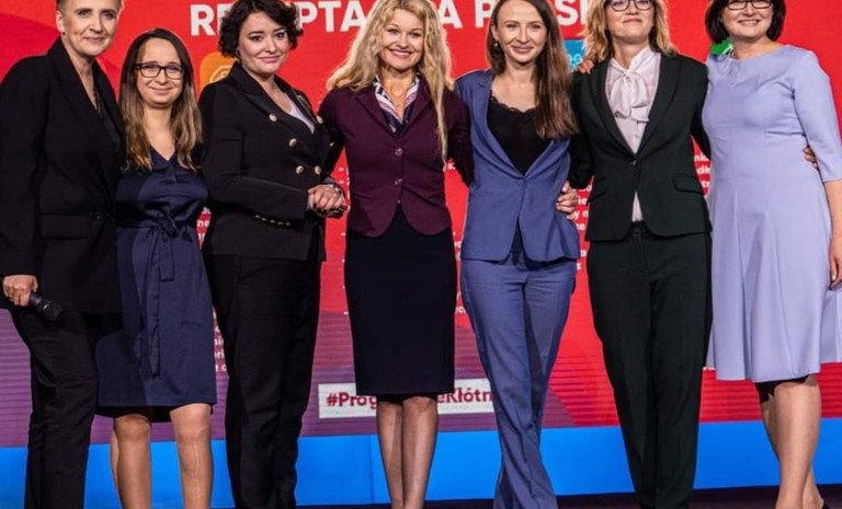 Karolina Pawliczak podczas konwencji Lewicy "Recepta dla Polski" razem z koleżankami posłankami. Posłanka z wielkopolski przedstawiła program pomocy społecznej, wsparciu rodziców w wychowaniu ...